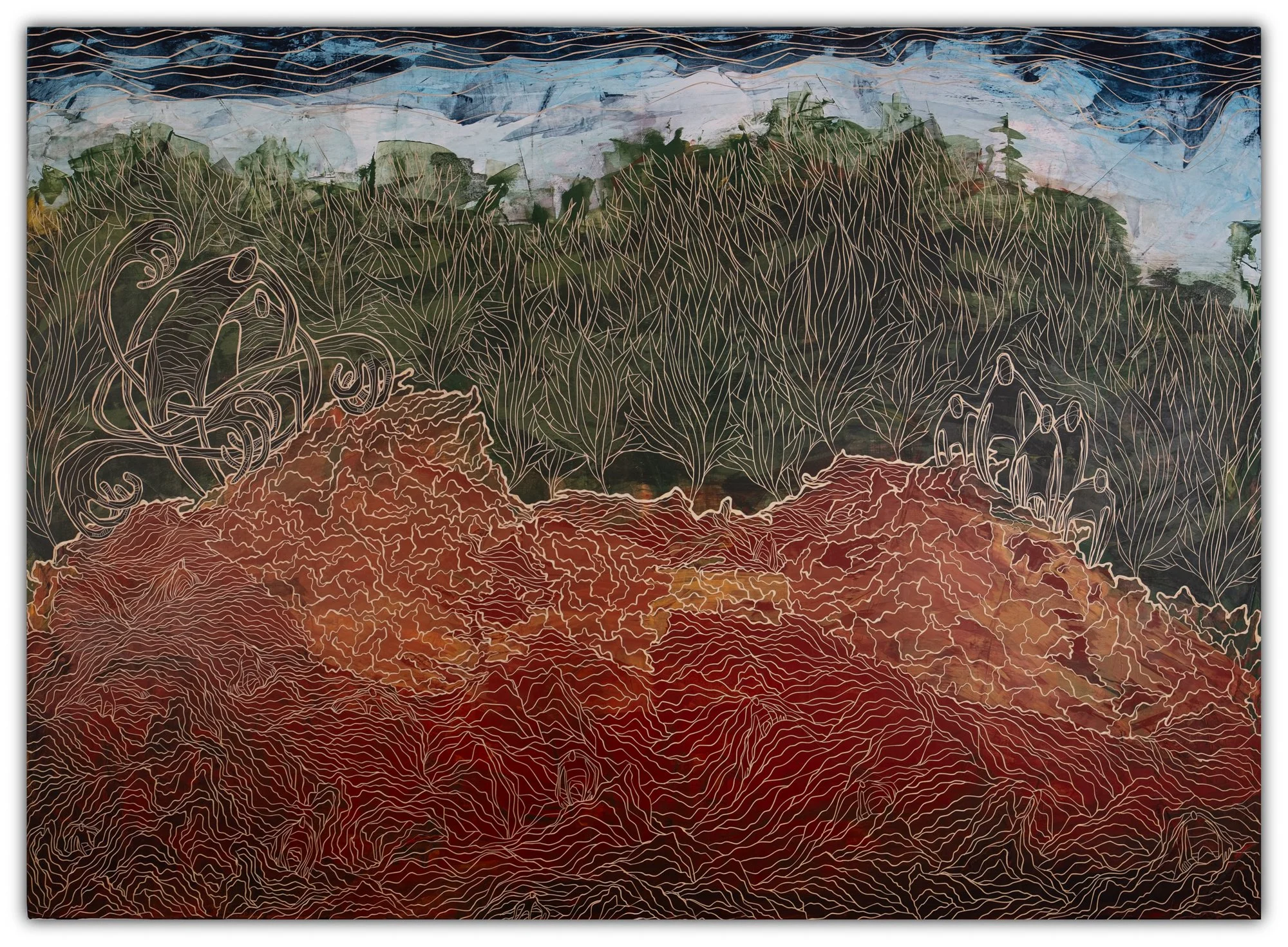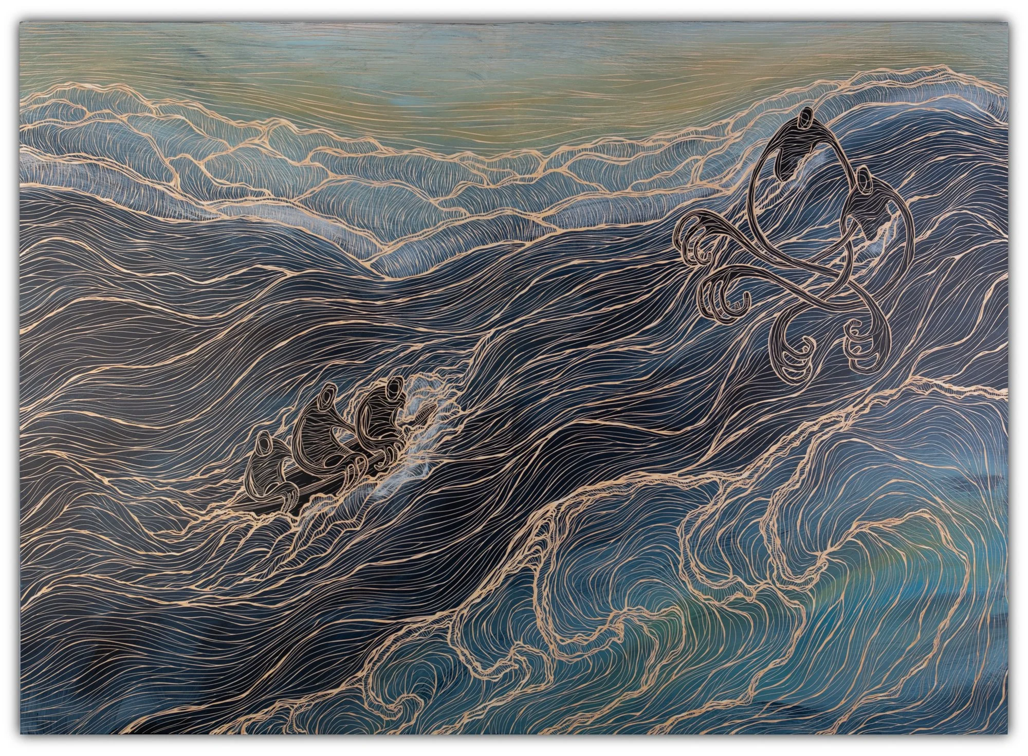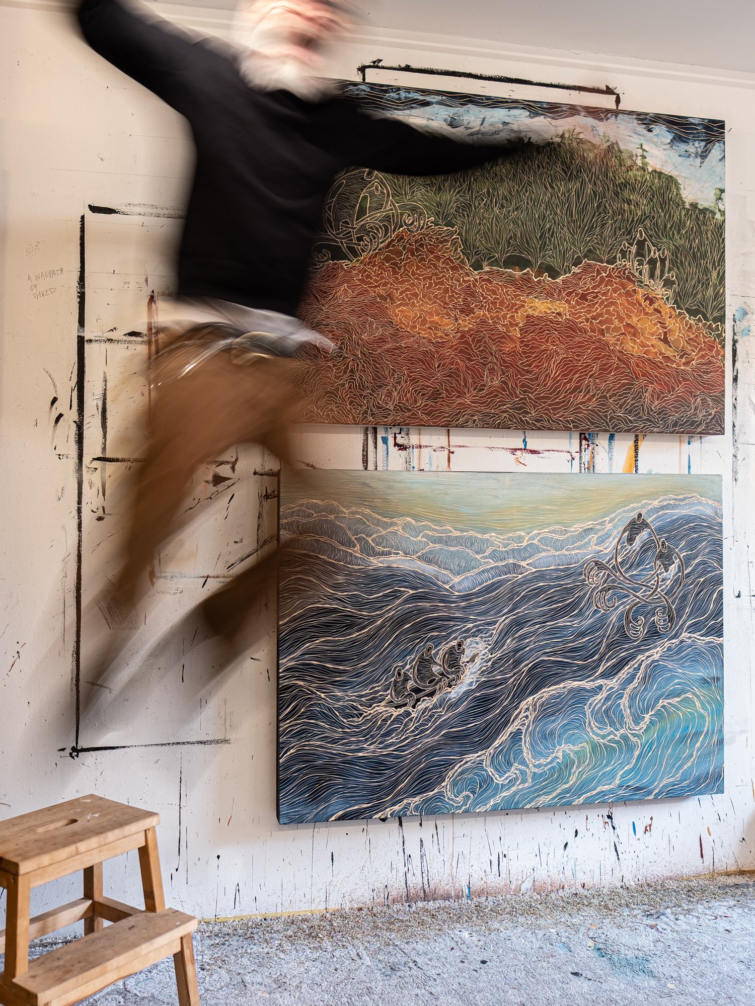 While Max Ernst carefully (and masterfully) painted in the details after applying color, I instead used blades and my signature carving technique at that stage.